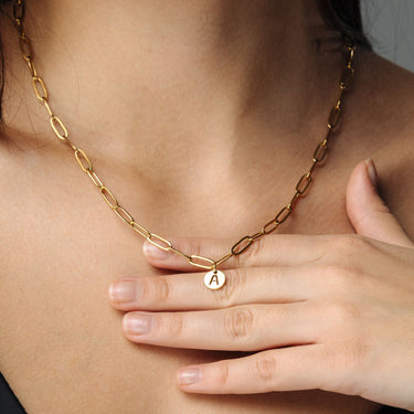 Diese ikonische Initialenhalskette vereint zeitlose Eleganz & Individualität in einem stilvollen Design. Perfekt für den täglichen Gebrauch oder als bedeutungsvolles Geschenk, setzt sie Ihre gewählte Initiale in den Mittelpunkt.