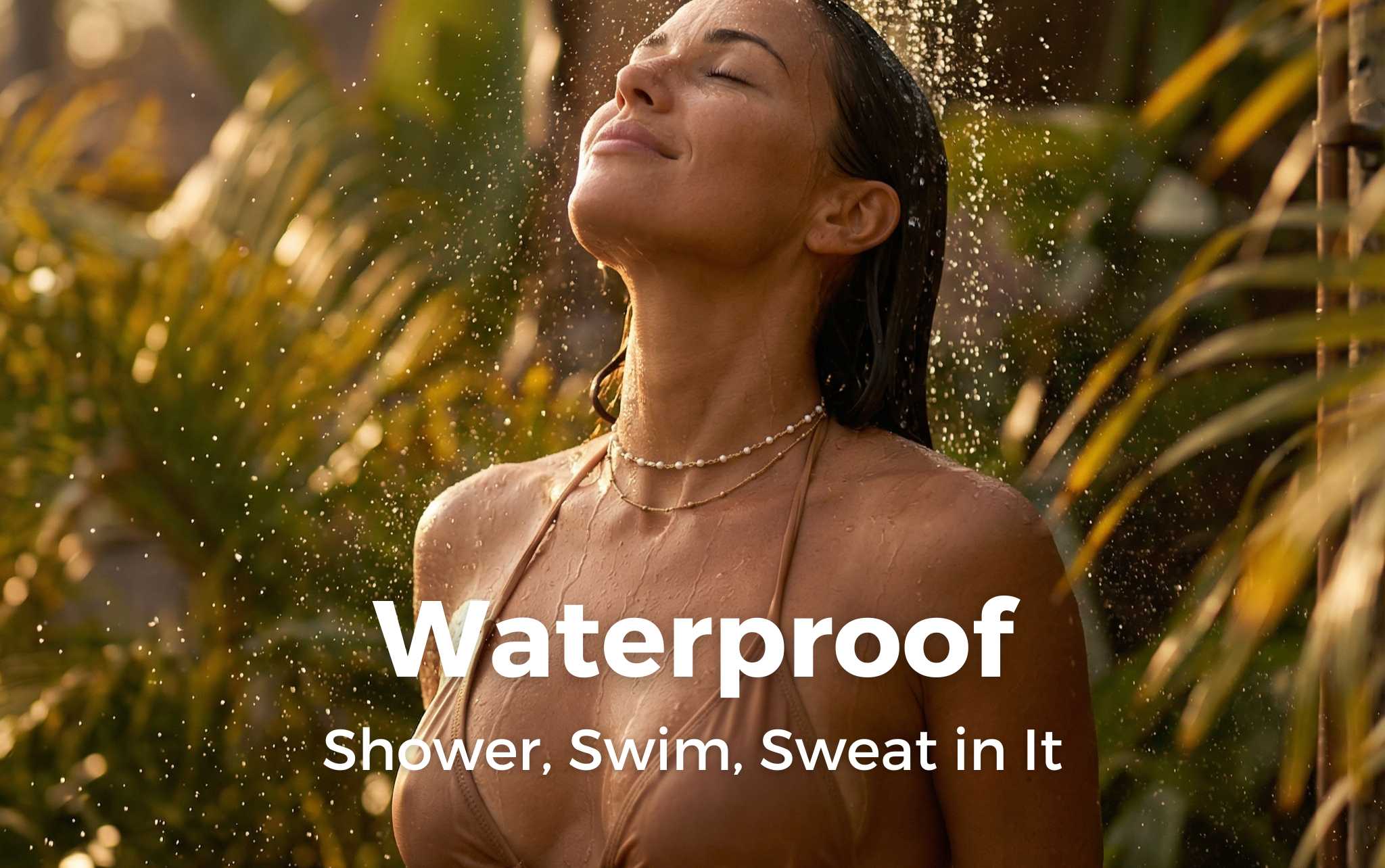 Et oui, elle est waterproof. Plage, piscine, douche—la magie ne part pas à l'eau.